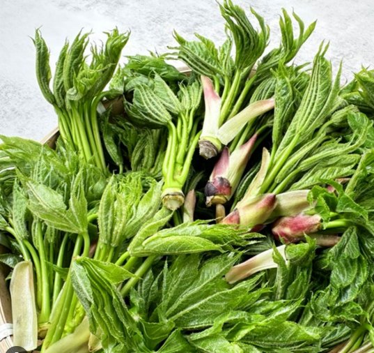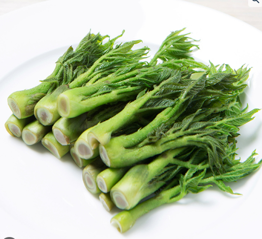 • 두릅처럼 생겼지만 줄기가 가늘고 잎이 넓으며 향은 약하고 식감이 부드러워요.