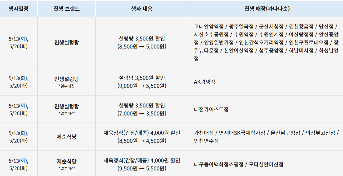 즐거운 외식도 하고 부담도 덜 수 있는 절호의 기회죠.맛과 혜택을 모두 챙길 수 있는 5월!