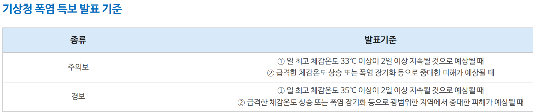 국가기상위성센터 기상청 폭염특보 발표 기준 정리