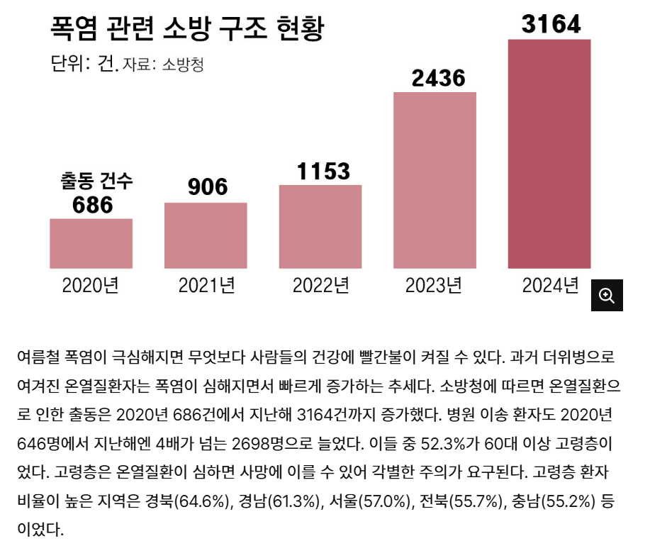 폭염은 단순히 더운 날씨를 넘어서 온열질환자를 크게 늘리고, 특히 *고령층(60세 이상)에서 사망 위험이 높아집니다.