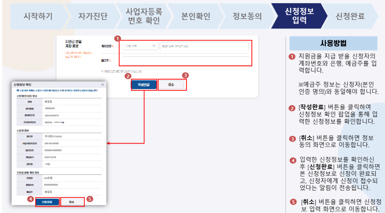 신속 지급 대상자는 사업자등록번호와 계좌번호 등 간단한 정보만 입력하면 지원금 수령이 가능합니다.