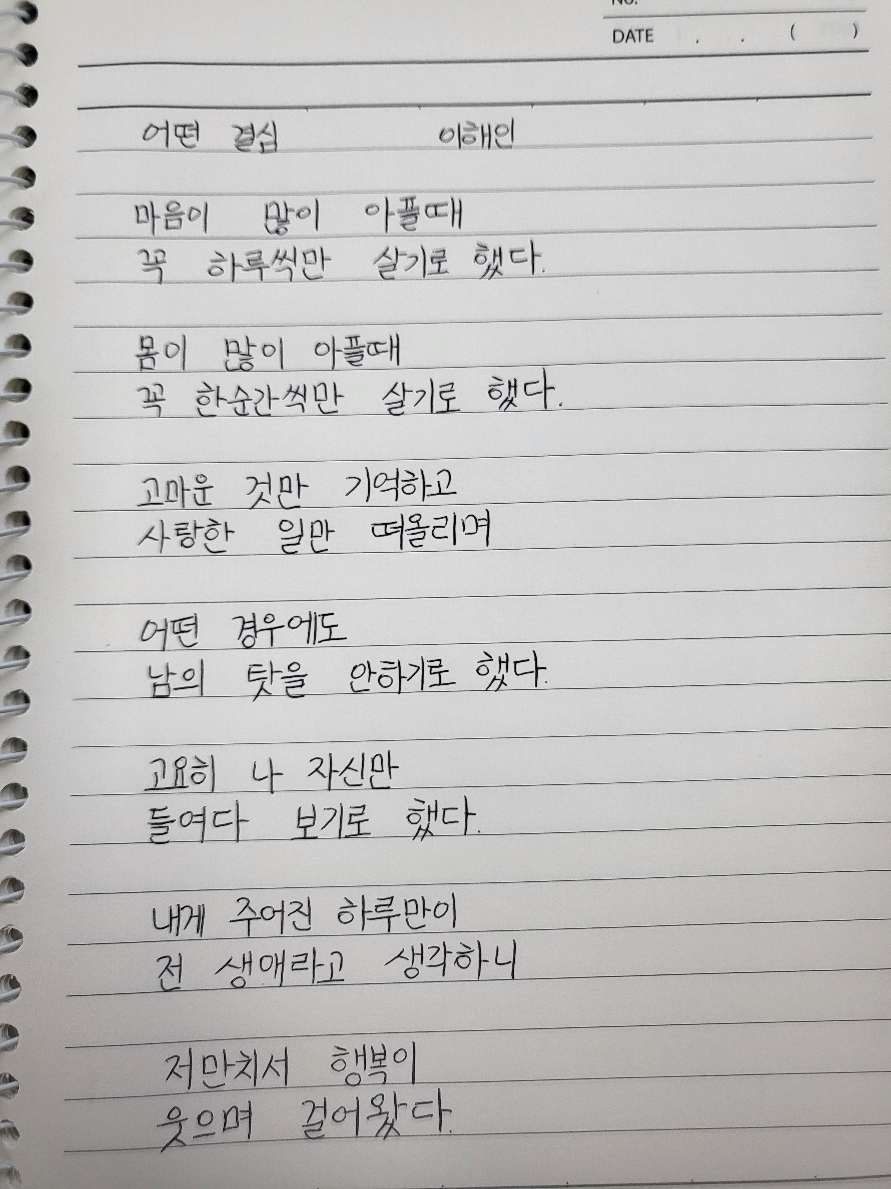 이해인 수녀님의 '어떤 결심'은 저의 마음과도 같은