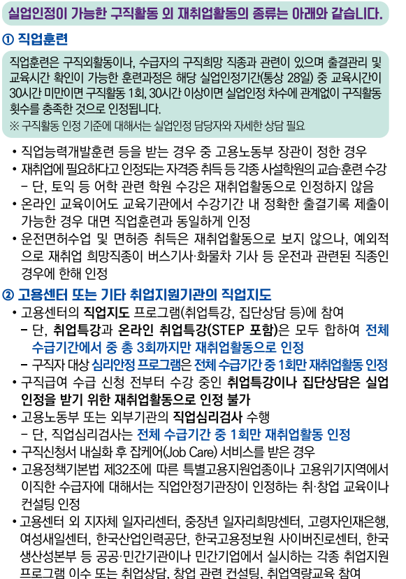 고용24 실업인정 시 구직활동 요건