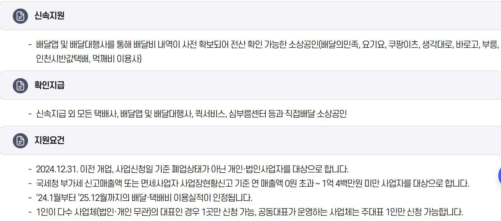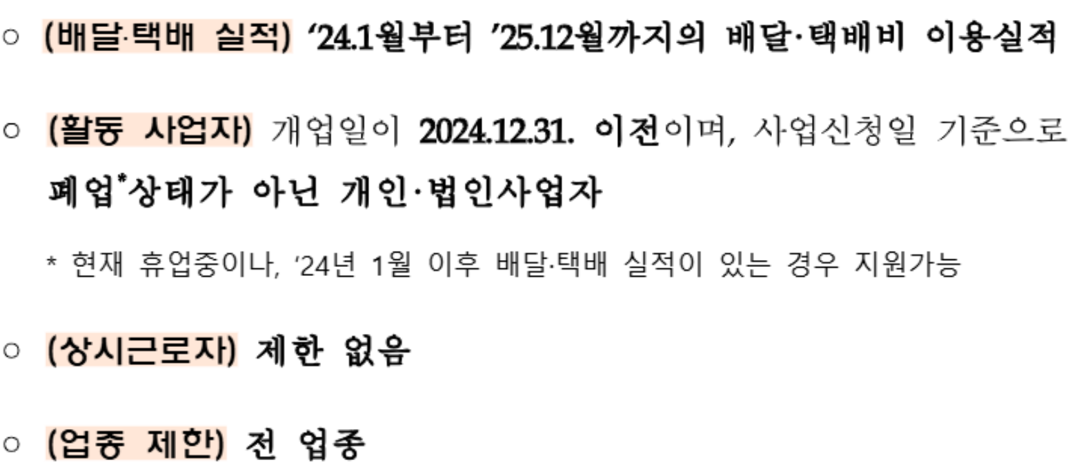 • 2024년 1월부터 2025년 12월까지 배달·택배 서비스 이용 실적이 있는 사업자