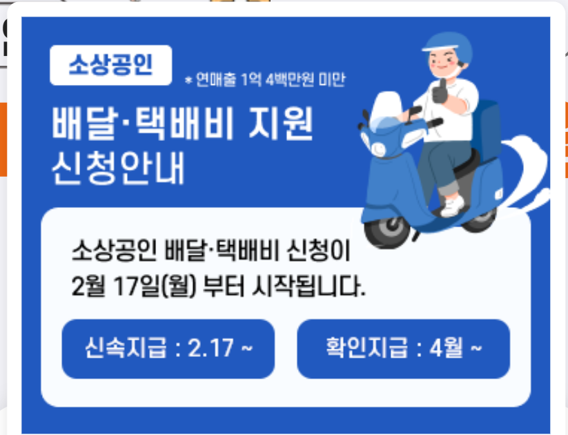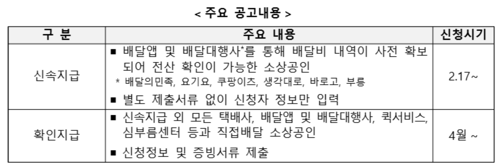 • 신청 방법: 온라인 신청 (소상공인배달택배비지원)