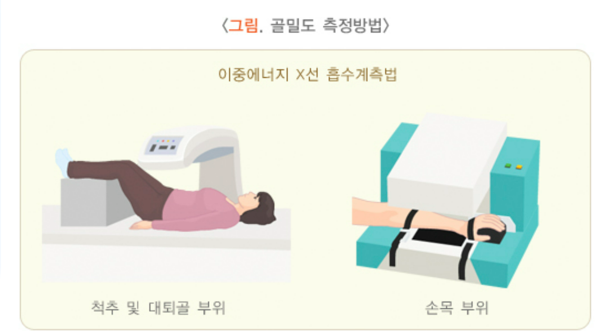 골다공증은 간단한 골밀도 검사로 확인할 수 있어요.