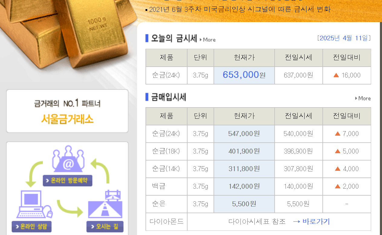 금은 시세가 실시간으로 변동되기 때문에 당일 시세를 꼭 확인하세요.